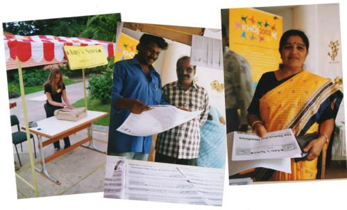 Contributors Akash and Umalakshmi with their copies of Amy’s News hot off the press on 1st November 2002