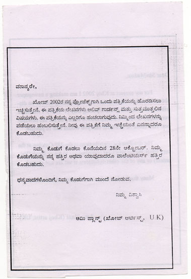 The process has been a lot of fun, but not without some unforeseen hic-cups, like the branch that fell on the cable resulting in a power cut at Sachu’s place where the computer is and where I am writing this now. And there were the typists in town that typed slowly and didn’t understand my handwriting and there were the punctures on the motorbike and all the times of getting lost.