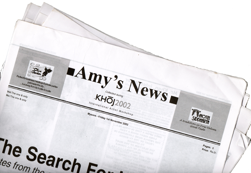 Observing the way we began to work at Khoj, processing ideas alone and then sharing them with the others and finding individual spaces for production and display. I wanted to make something that we could all contribute to, if desired. Requesting stories for the newspaper resulted in many suggestions, anecdotes and conversations between everyone at Khoj.